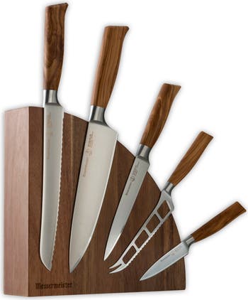 - Set includes: 8inches Stealth Chef's Knife, 9inches Bread Knife, 6inches Utility Knife, 5inches Cheese & Tomato Knife , 3.5inches Paring Knife, and an Acacia Magnet Block