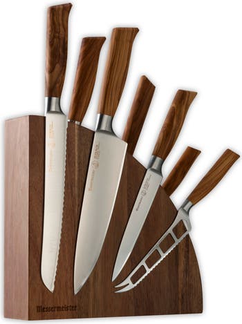 - Set includes: 8inches Stealth Chef's Knife, 9inches Bread Knife, 8inches Kullenschliff Carving Knife, 6inches Fork, 6inches Utility Knife, 5inches Cheese & Tomato Knife , 3.5inches Paring Knife, and an Acacia Magnet Block