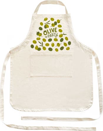 Our NEW Olive To Party Apron is a lightweight, long-lasting kitchen essential. Made from a soft cotton fabric, it's built to withstand even your messiest days in the kitchen, absorbing minor spills and protecting your clothes from food splatters, dust, and grime. It features two spacious front pockets, perfect for storing your phone or utensils. With extra-long adjustable neck and waist straps, the unisex design offers a comfortable fit for most. A perfect gift for olive lovers, chefs, or foodies alike, our Olive To Party Apron is a kitchen staple that keeps you clean and is sure to spark joy. 100% cotton Screen-printed with planet-friendly inks Features extra-long adjustable neck and waist straps Designed with two roomy front exterior pockets Packaged in a biodegradable container for easy gifting or reuse One size fits most, measures approx. 28" x 24" Machine washable Deigned and packaged in the USA Pair it with our matching Olive dish towel. Color may vary slightly from monitor to monitor.
