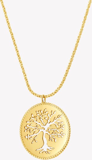 18 kt gold finish necklace with olive tree motif inlaid on a circular medallion with beaded edge detail. Pendant is set on a fully adjustable slider rope chain. Inspired by Psalm 52:8, the Rooted collection showcases the exquisite olive tree, embodying enduring faith and resilience. Each piece invites a journey of spiritual communion, transcending mere adornment to offer a poetic glimpse into a life intertwined with divine whispers. This collection delicately bridges the earthly and the celestial, evoking a serene allure of spiritual nourishment and eternal grace.
