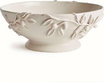 Each and every distinctive olive detail of the Olivella Footed Bowl is handmade, and hand-applied by Italian artisans in Tuscany, Italy. A subtle, open design in a soft white glaze. With a classic Italian craftsmanship passed down through generations, each piece is a true original. In grand scale, a dynamic centerpiece for feature table, kitchen island or mantel.