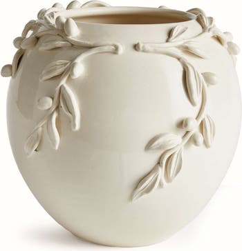 Each and every distinctive olive detail of the Olivella Vase is handmade, and hand-applied by Italian artisans in Tuscany. A classic design in a soft white glaze. With an extraordinary craftsmanship passed down through generations, each piece is a true original. In grand scale, a dynamic centerpiece for feature table, kitchen island or mantel.