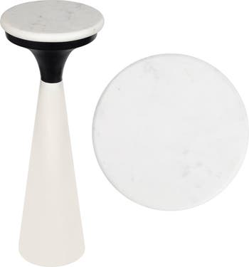 Oliver 22.25" Mid-Century Glam Retro Metal Drink Table and Decorative End Table with White Marble Round Top