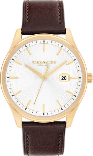 Movement: Three-hand quartz movement. Quartz movement: powered by a battery and features an internal electrical circuit to control the rate of the watch's ticking.