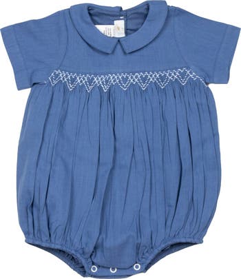 Our Oliver Linen Smocked Bubble Romper is the perfect outfit to celebrate Spring and Summer occasions. This soft, classic heirloom piece features hand smocked details. Suitable for any occasion, this classic smocked romper is perfect for your little one, providing comfortable and stylish all-day wear.