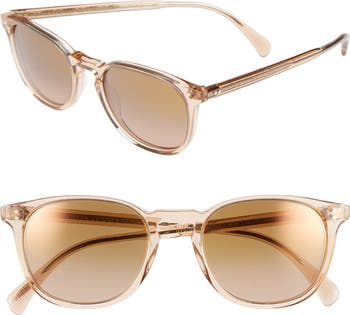 Pin dot details at the temples and a keyhole bridge refine these sleek, retro-inspired sunglasses featuring mirrored lenses in a translucent frame.