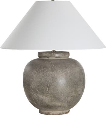 Crafted from hand-thrown ceramic, this dimmable table lamp features a tapered shade and a stunning olive wash that add style and an ambient glow to your space.