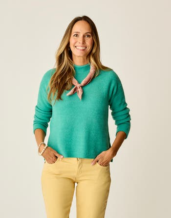 All the love of the original Livia sweater now in an even more buttery soft yarn. The ribbed mock neck, side seam slits and fitted sleaves set this sweater up to be a new favorite in the making.