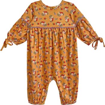 - The Olivia Romper brings effortless smiles to any day with its delightful floral pattern. Designed for comfort and cuteness, its relaxed fit features elastic cuffs for ease of movement, a delicate yoke detail for added elegance, and ties at the puffed sleeves for a touch of whimsy. Dress your little one in style! Fabric Content & Care 100% POLYESTER Machine Wash Cold