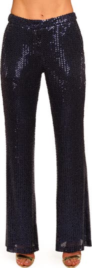 Drip in the dazzle with wide leg party pants covered in shiny sequins.