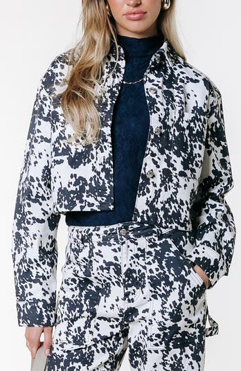 Take a walk on the wild side with our Olle cow print denim blouse. A fun print this spring to keep your wardrobe looking fresh. Simple button closure and a cropped length, and of course a perfect match with our Tinsley Cow Denim Pants