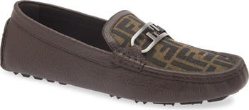O'lock hardware offers a sleek, contemporary take on the label's iconic FF logo on a moc-toe driving loafer crafted from supple leather and logo jacquard.
