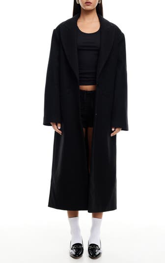 Take on wintry weather in a classic coat polished with peaked lapels.