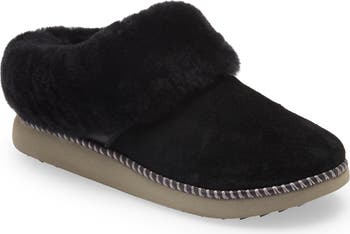 Plush genuine shearling pairs with a molded EVA midsole and durable wet-grip lug sole in this luxe indoor-outdoor slipper with cozy-chic styling.
