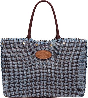 Whether it's a business lunch or a beach day, this woven tote, accented with leather details and lined with a removable canvas lining, will be welcome.