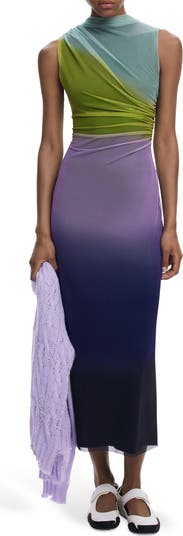 Ombré Print Sleeveless Ruched Maxi Dress