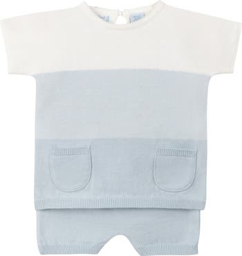 Ombré colorblocking shifts this adorable short-sleeve sweater and shorts set—that's knit from soft, breathable cotton yarn—into a cute everyday favorite.