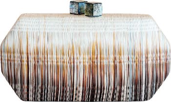 Handwoven by artisans from natural palm fibers, this compact octagonal clutch is framed by mother-of-pearl clasps for an earthy yet sophisticated look. Smooth satin lining and a chain strap add polished style. Slight variations in weave and color make each bag one of a kind.