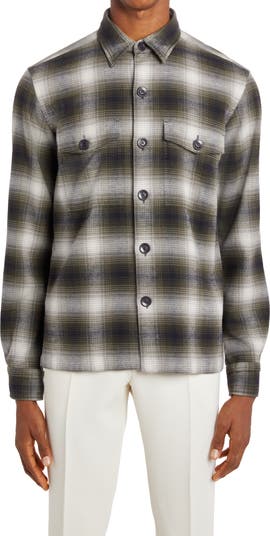 Classic workwear drives the look of this utility shirt-jacket crafted of brushed cotton twill patterned in striking ombré plaid.