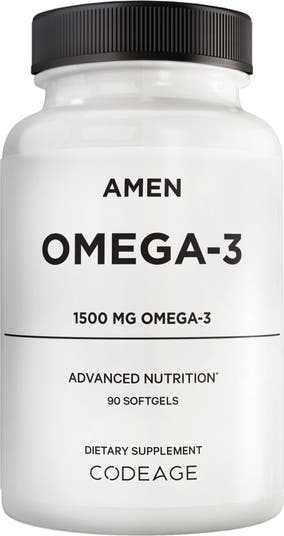 - Amen Omega-3 delivers 1500mg of omega-3s per serving, featuring a balanced blend of EPA, DHA, and other essential fatty acids in soft gel form.