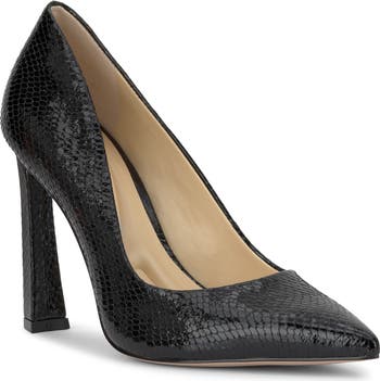 A pointy toe elongates the streamlined profile of an alluring pump featuring a cushioned footbed and mixed-media heel.