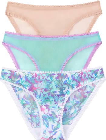 Sheer mesh offers sexy coverage and featherweight comfort to a nearly invisible low-rise bikini edged in dainty openwork trim.