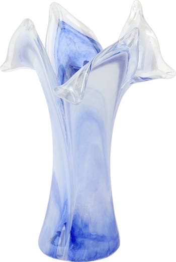 A petaled top recreates the gentle crash of waves on the island of Capri in this exquisite mouth-blown vase crafted in Italy from elegant cobalt glass