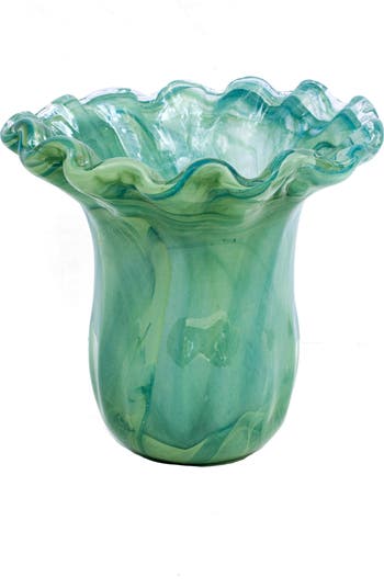 Mouthblown by skilled Italian artisans, the organic shape and ocean hues of this vase are inspired by the rugged beauty of Italy's coastline and waves crashing on the island of Capri.