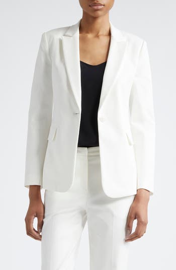 Polish a summery look with a bright white blazer simply closed with a single button.
