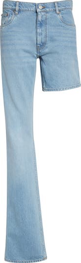 Asymmetric construction pairs with a relaxed boyfriend fit in these organic-cotton-denim jeans that feature a modern silhouette with one full-length leg and the other cut short.