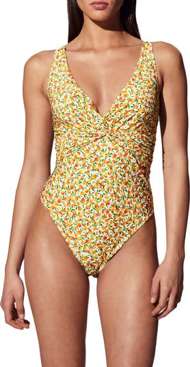 This one-piece is perfect for a day of fun in the sun with a versatile solid hue and a twisted front.