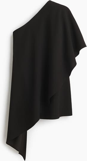 One-shoulder top in twill with an asymmetric neckline, a shoulder pad on one side and one wide, elbow-length sleeve that continues as an additional, asymmetric layer across the front. Concealed zip at one side.