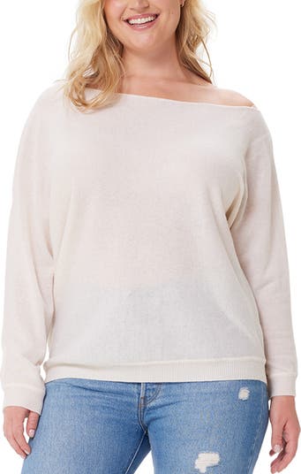 A slouchy, shoulder-baring sweater is knit with ribbed trim and a kiss of luxurious cashmere for an ultrasoft touch.