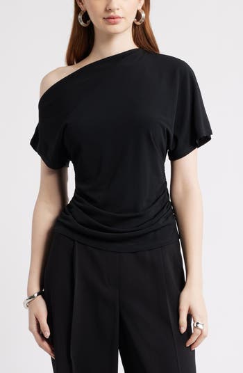The comfort of stretchy jersey meets off-the-shoulder allure in this top that’s ready to turn heads from brunch to nights spend on the town.
