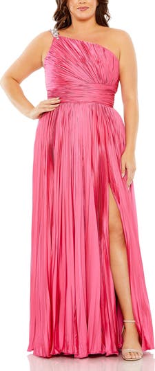 Mac Duggal One Shoulder Embellished Pleated Sleeveless Gown, Main, color, Hot Pink