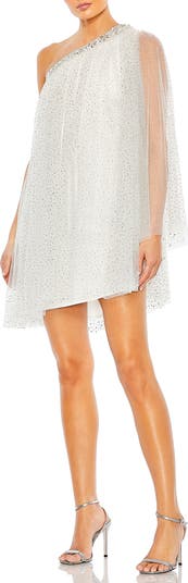 One Shoulder Embellished Tulle Mini Dress