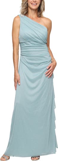 One-Shoulder Glitter Mesh Gown
