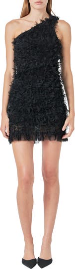Frothy fringe adds a jolt of joy to a party-ready dress cut to a leg-baring length.