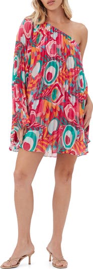 One shoulder pleated mini cocktail dress