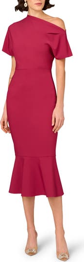 One-Shoulder Stretch Crepe Cocktail Midi Dress