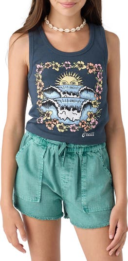 Hibiscus blooms frame the waves crashing across a cotton-jersey tank your child will want to wear every sunny day.