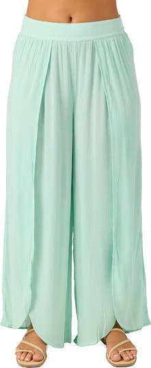 Channel beachy, retro vibes in these crinkled pants featuring flowy wide legs with slits up the sides for an airy finish.