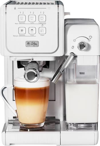 Make coffee-shop-quality drinks in the comfort of your home with the Mr. Coffee One-Touch CoffeeHouse+ Espresso, Cappuccino, and Latte Maker. Its innovative modern design and One-Touch interface let you brew, froth, and create single or double shots of espresso, lattes, cappuccinos with one touch of a button. The Progress Bar lets you know when the machine is ready to go and how your drink is progressing, while the automatic milk frother whips up your favorite milk into a light and airy foam. With a large 18 oz. milk reservoir this espresso machine easily makes multiple cappuccinos or lattes, plus it's removable for easy filling and cleaning-great for storing leftover milk in the fridge, too! This espresso and coffee machine is compatible with sustainable Easy Serve Espresso (ESE) pods to take the guesswork out of grounds dosage and tamping. It also includes an adjustable cup tray, single and double shot filters, measuring scoop, and tamper. Brew your coffee like a barista pro! Item Dimensions: 14.70" x 8.50" x 12.60" Item Weight: 13.85lbs