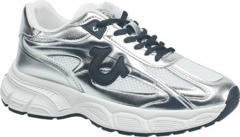 The True Religion Onika Sneaker is a statement piece that seamlessly blends style and functionality. Featuring a striking metallic finish and mixed media design, these joggers exude a bold and contemporary aesthetic. The built-up outsole provides superior durability and traction, ensuring stability for all-day wear. Designed with a comfortable interior lining and a flexible fit, these joggers deliver both style and comfort. Perfect for elevating casual or athleisure looks, this piece combines innovative materials with trend-forward design, making it a standout addition to your wardrobe.