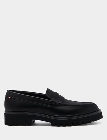A rubber sole with prominent tread brings a modern twist to this Onyce loafer in fine black calfskin.