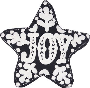 Onyx "Joy" Snowflakes Star Shaped Cotton Blend Christmas Accent Throw Pillow 16" x 18"