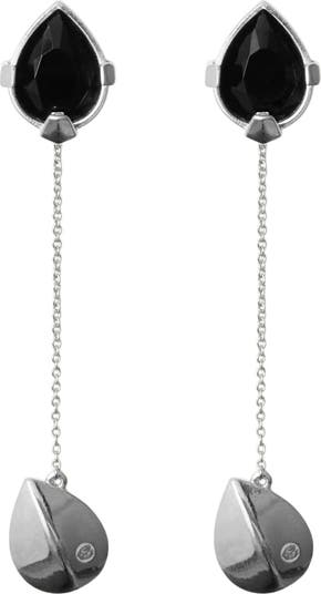 A pair of earrings made in Italy from sterling silver. The onyx-inlaid shield features a detachable cover that can be unclipped to hang as a chain-link drop pendant or removed to wear as stud earrings.||Engraved rose at pendant|Pierced jewellery cannot be returned. This does not affect your statutory rights.