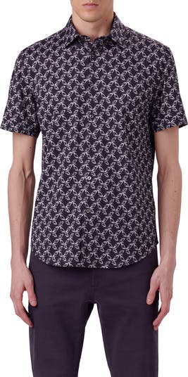 OoohCotton® Miles Leaf Print Short Sleeve Button-Up Shirt