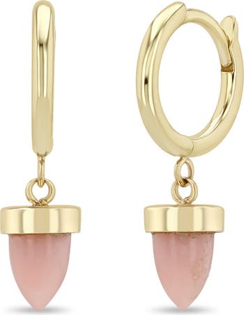 Bullet-shaped opal drops add subtle color to these huggie hoops made from 14-karat gold and designed to be worn day and night.