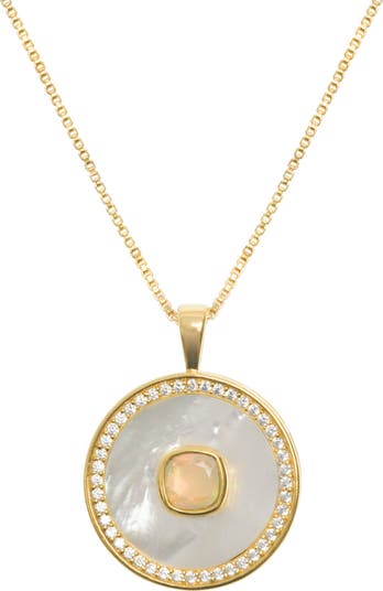 Our unique Opal Mother of Pearl Birthstone Necklace pairs a beautiful milky-pink opal with Mother of Pearl, framed by timeless White Zircon and set in 18ct Gold vermeil over Sterling Silver. Associated with creativity and hope, this October birthstone necklace makes a meaningful, personal gift with a soft and feminine design.